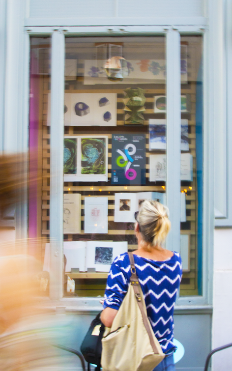 d’artistes participant aux Arts en Balade dans les vitrines de la rue