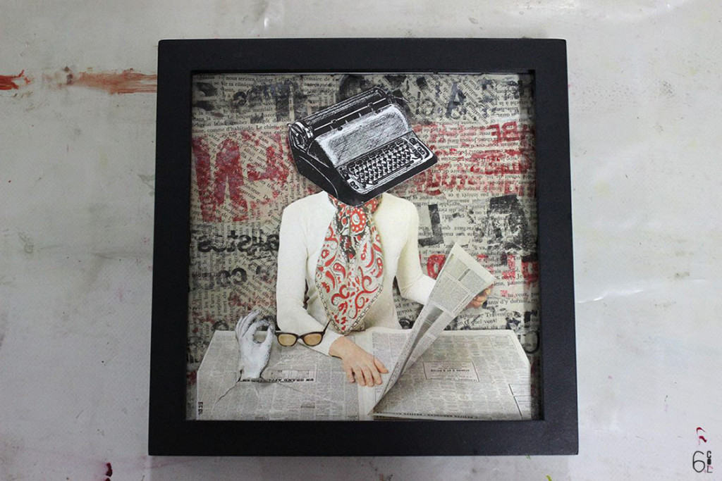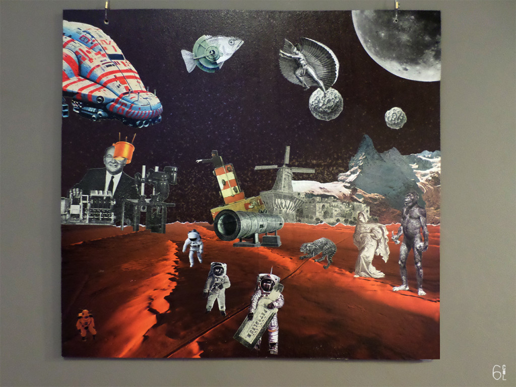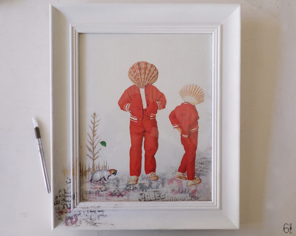 Collagiste depuis toujours, je recherche, découpe au scalpel, colle et redispose une nouvelle réalité. J’aime extraire une photo de son contexte pour la placer dans une situation décalée, créer de nouvelles histoires à partir de photos soigneusement sélectionnées dans des encyclopédies, des livres, des fascicules chinés. Replacer un regard pour être regardé autrement, déchirer un paysage pour être dépaysé, placer et déplacer des multitudes de photos jusqu’à l’illumination.