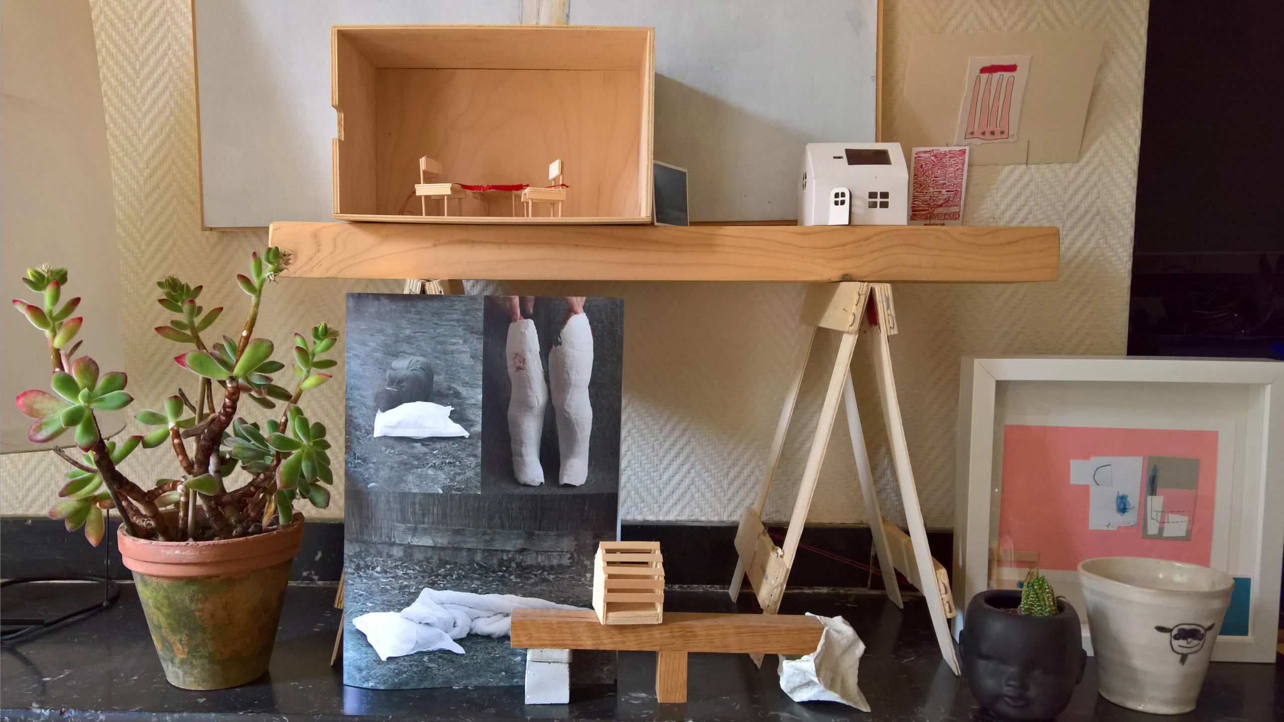 A9heures est un collectif formé de deux plasticiennes, valérie Ascos, anne-frédérique Maurer, une céramiste pascale Laplanche et d’artistes invité-es, aude Aussilloux. Nous utilisons librement différents médiums et développons en écho ou en complicité un travail de dessin, gravure, photographie, céramique, écriture, art textile, installations.