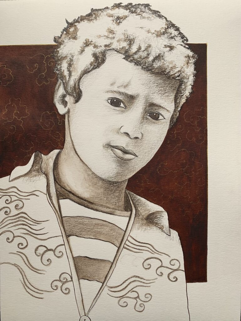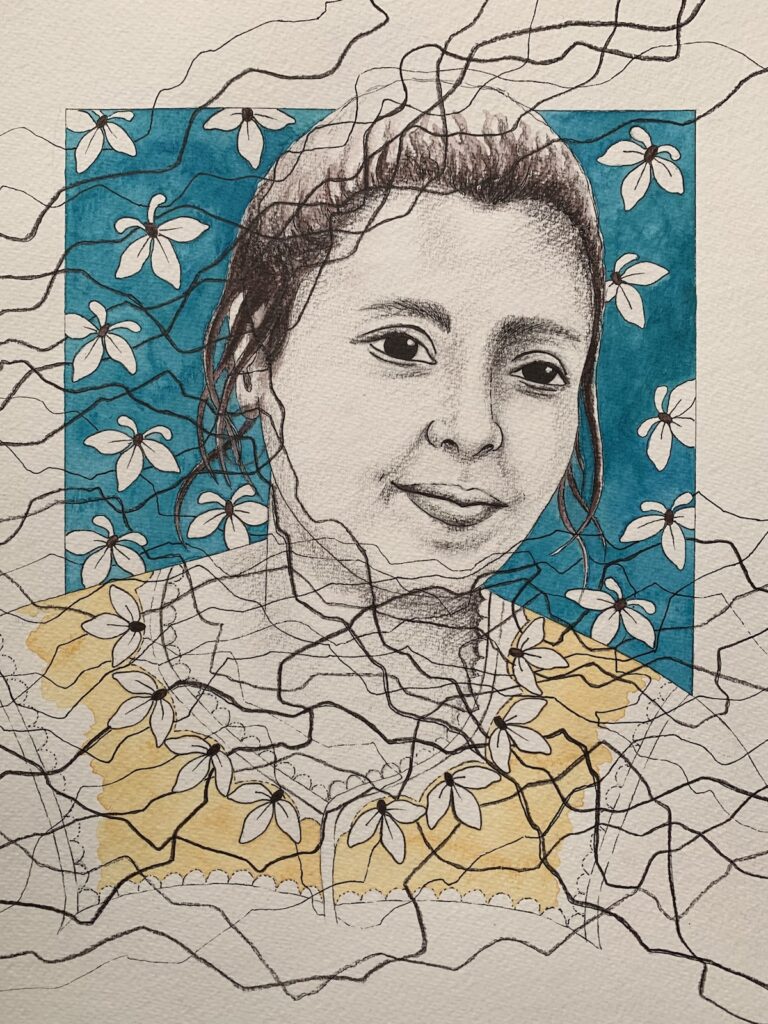 A travers ces dessins, par cette approche graphique personnelle, je tente d’apporter ma propre vision sensible à ces portraits.