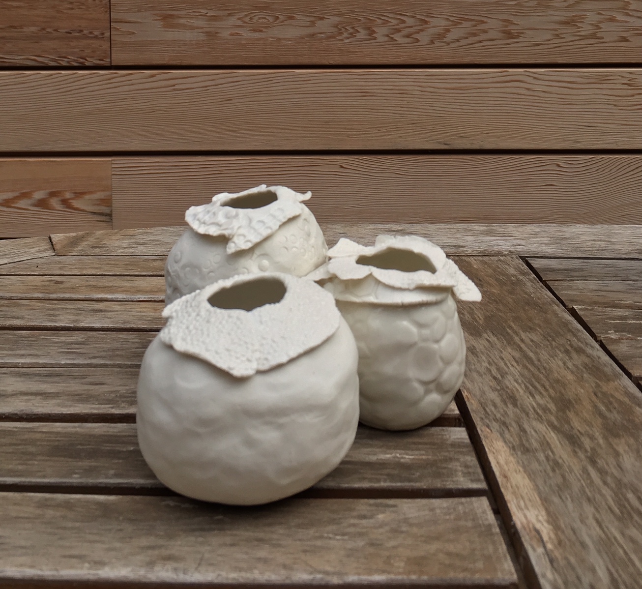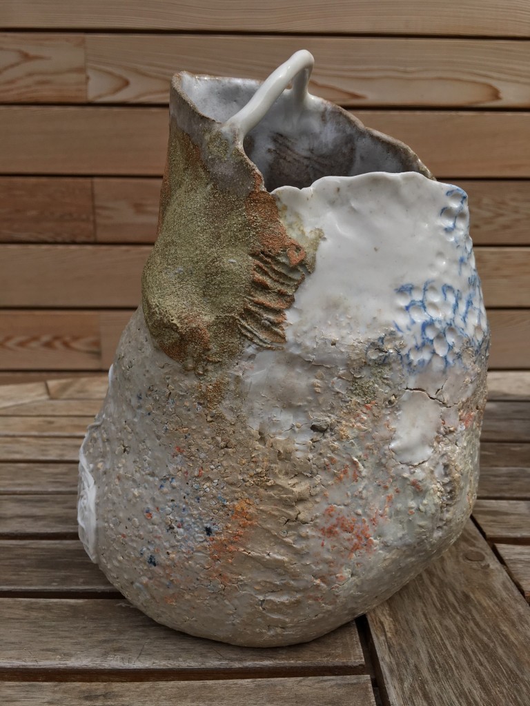 Découverte de la Terre lors d’un stage, puis inscription pendant 8 ans au cours de l’atelier Croix Baragnon et pour finir nous avons créer notre propre atelier au départ avec Anne Kurzberg pendant 3 ans rue Pharaon puis Muriel Senaux nous a rejoint et nous louons notre atelier au 32, rue Denfert Rochereau depuis 4 ans et avons créer l’Atelier Denfert où nous travaillons chacune pour notre compte. Notre travail est un travail à la plaque, colombins, estampage….. toutes nos pièces sont uniques nous n’avons pas de tour et montons nos pièces à la main ce qui leur donne un coté irrégulier et unique. Après une première cuisson nous appliquons nos couleurs et nos émaux et terminons par une dernière cuisson à 1250° nous utilisons soit des grès soit de la porcelaine.
