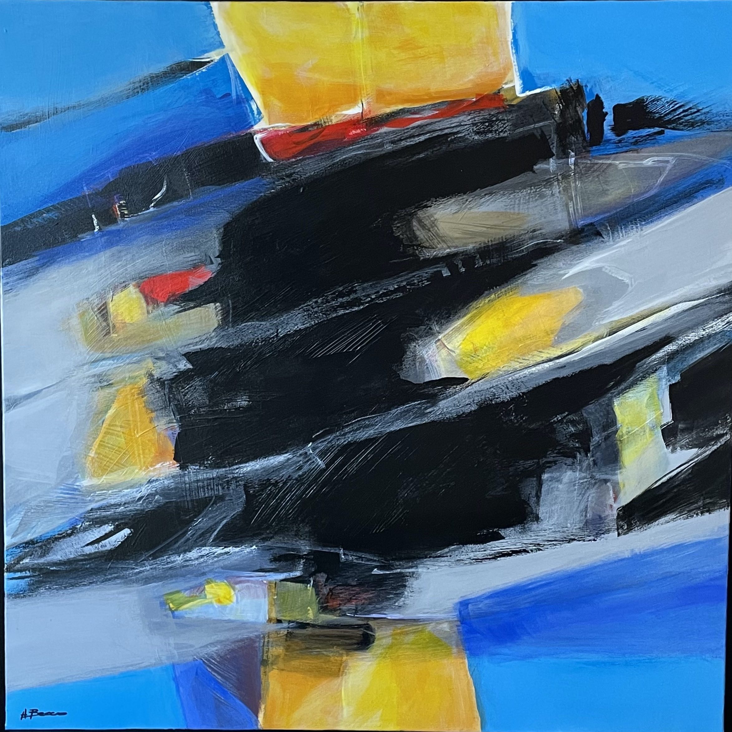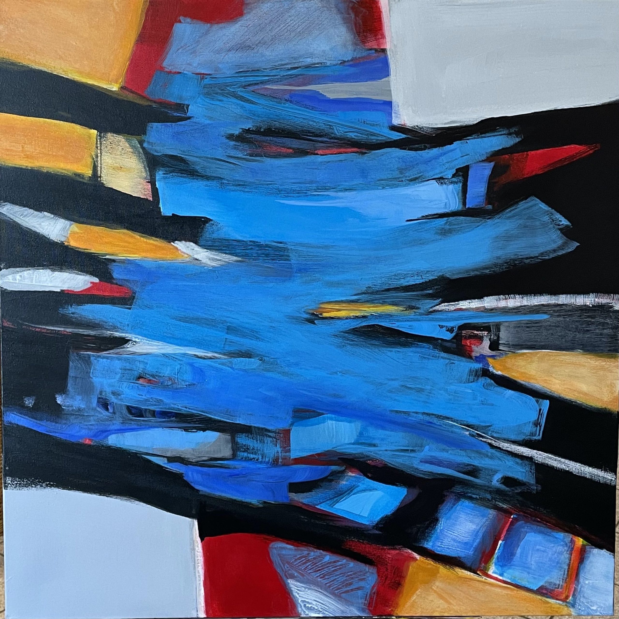 Le travail sur la composition, la couleur, le rythme sont des territoires sans cesse explorés. La rapidité du séchage de l’acrylique permet un vrai travail sur la matière en créant des superpositions colorées ou des transparences en donnant au support densité ou profondeur. La créativité ne naît pas d’une intention délibérée mais d’une constante remise en cause d’un savoir-faire. L’abstraction représente pour moi une page de grande liberté. Je m’affranchis de l’image, je m’émancipe de la réalité.