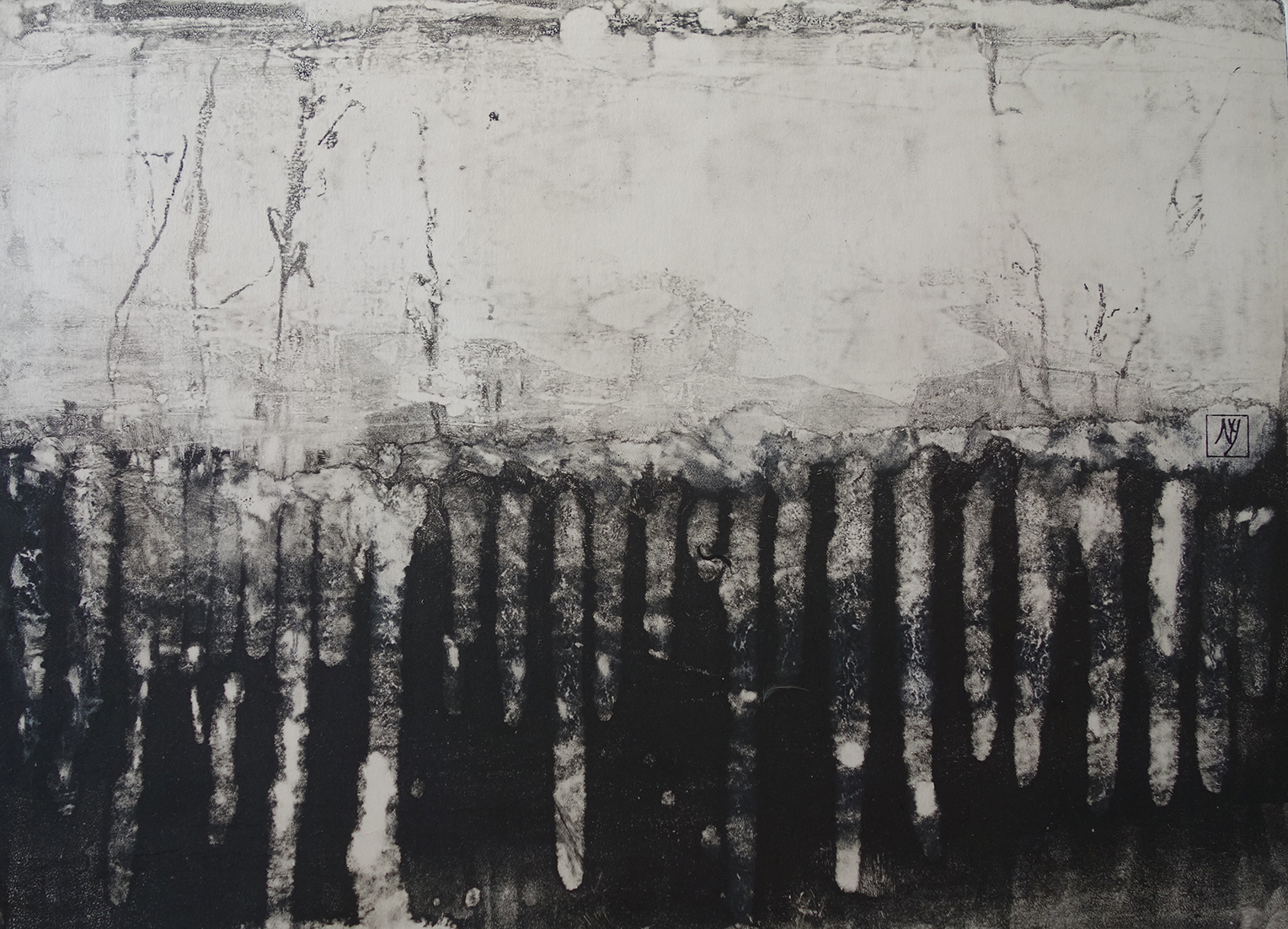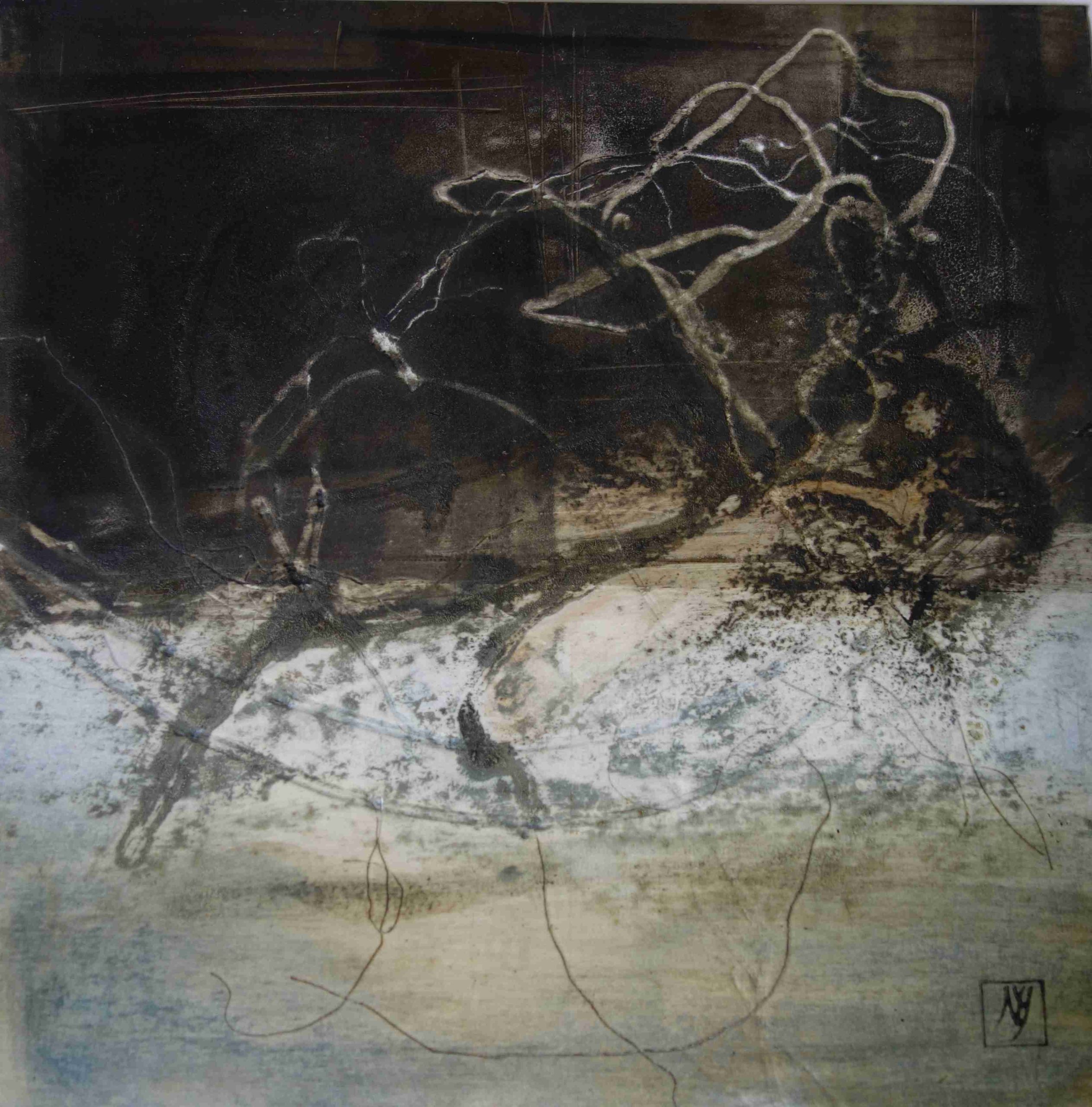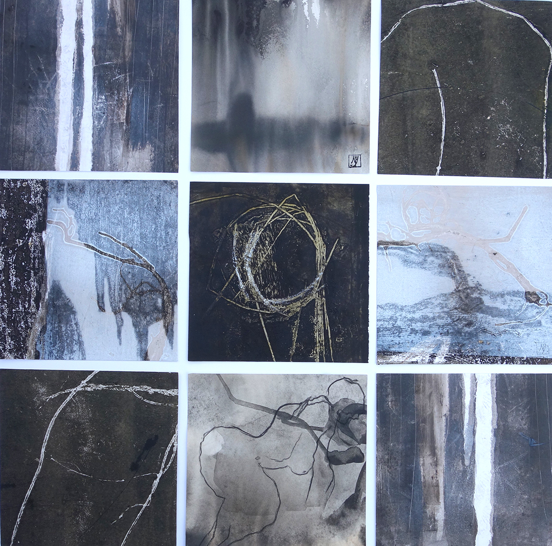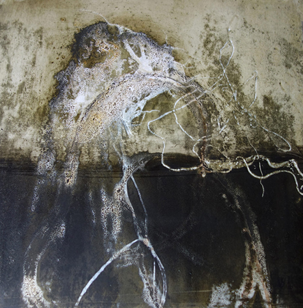 Techniquement la plupart de mes tableaux sont réalisés en technique mixte. La base de mon travail est le plus souvent réalisée à la presse sous la forme de monotypes. J’interviens dans un deuxième temps soit à la pointe sèche, en gravure ou tout simplement en dessinant à la mine de graphite (voir le site ).
