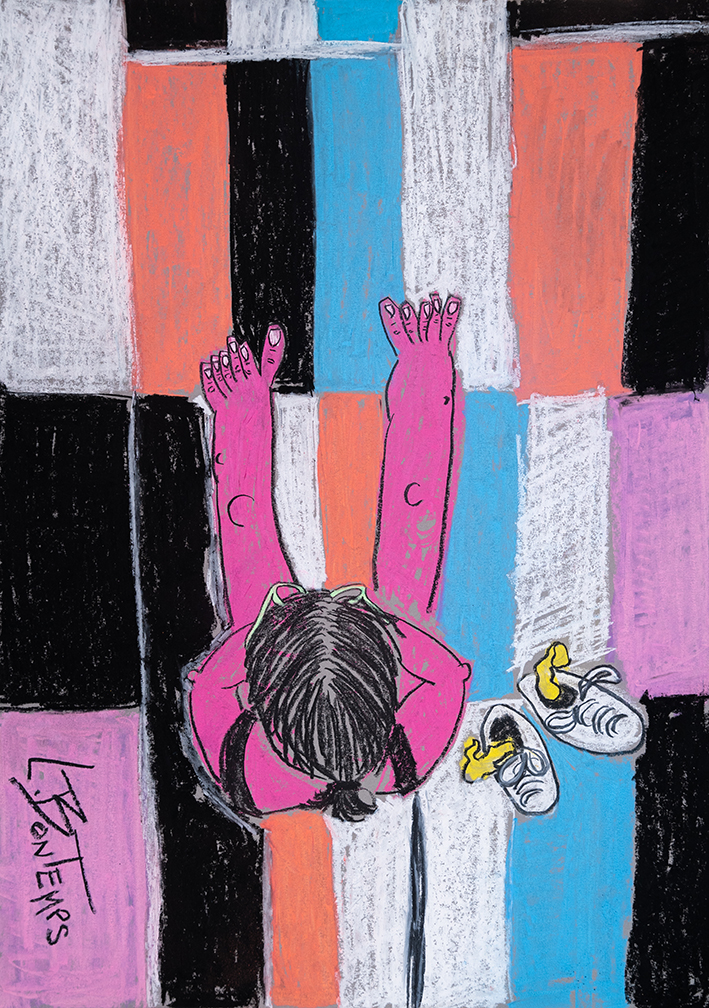Que je couche sur le papier des souvenirs d’enfance, des silhouettes humaines ou animales, des décors urbains ou minéraux, je m’attache à ce que mon trait soit toujours marqué par un immense degré de liberté. Oui, il faut que ce soit libérateur, c’est comme ça que je vois l’art en général.