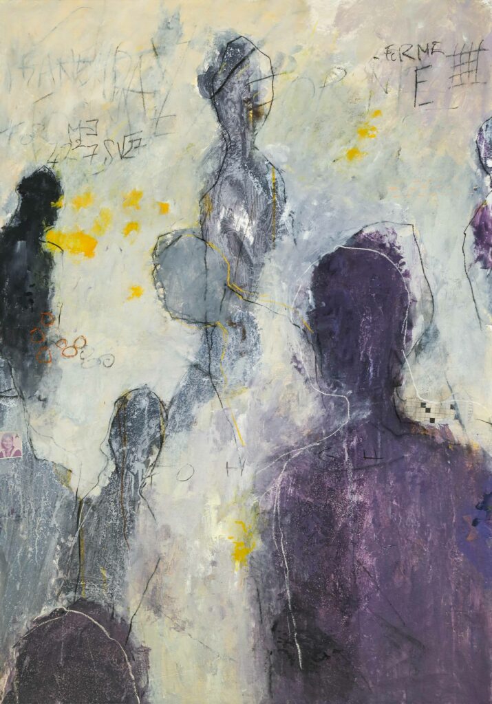 Entre abstraction et figuration, avec en arrière-plan un monde en désordre, j'explore l'être humain, espèce d’animal mal élevé, aux frontières d’un univers imaginaire et fantaisiste.