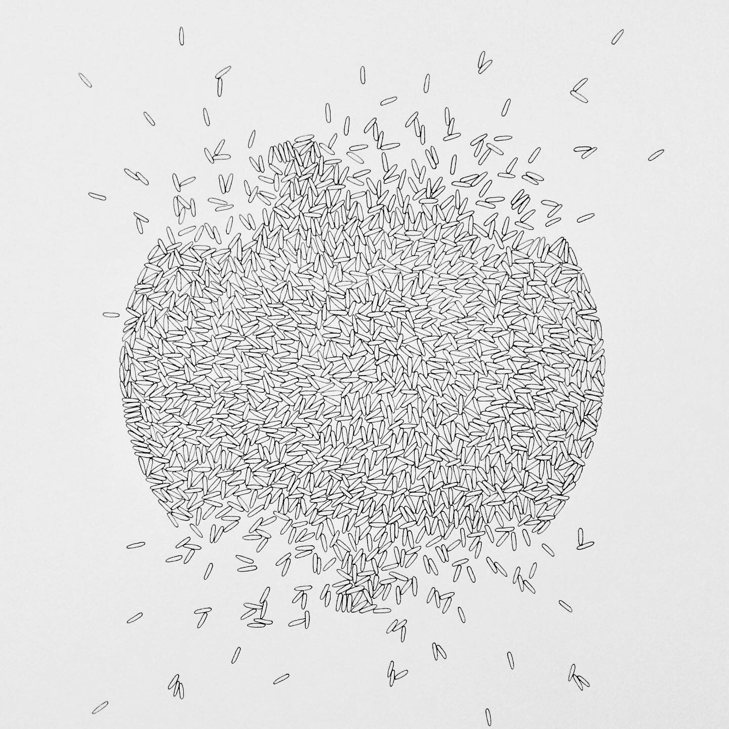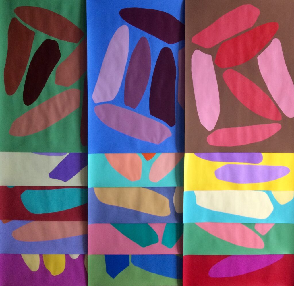 de différents médiums pour explorer la forme accumulative d’un même motif. La peinture, le dessin, la