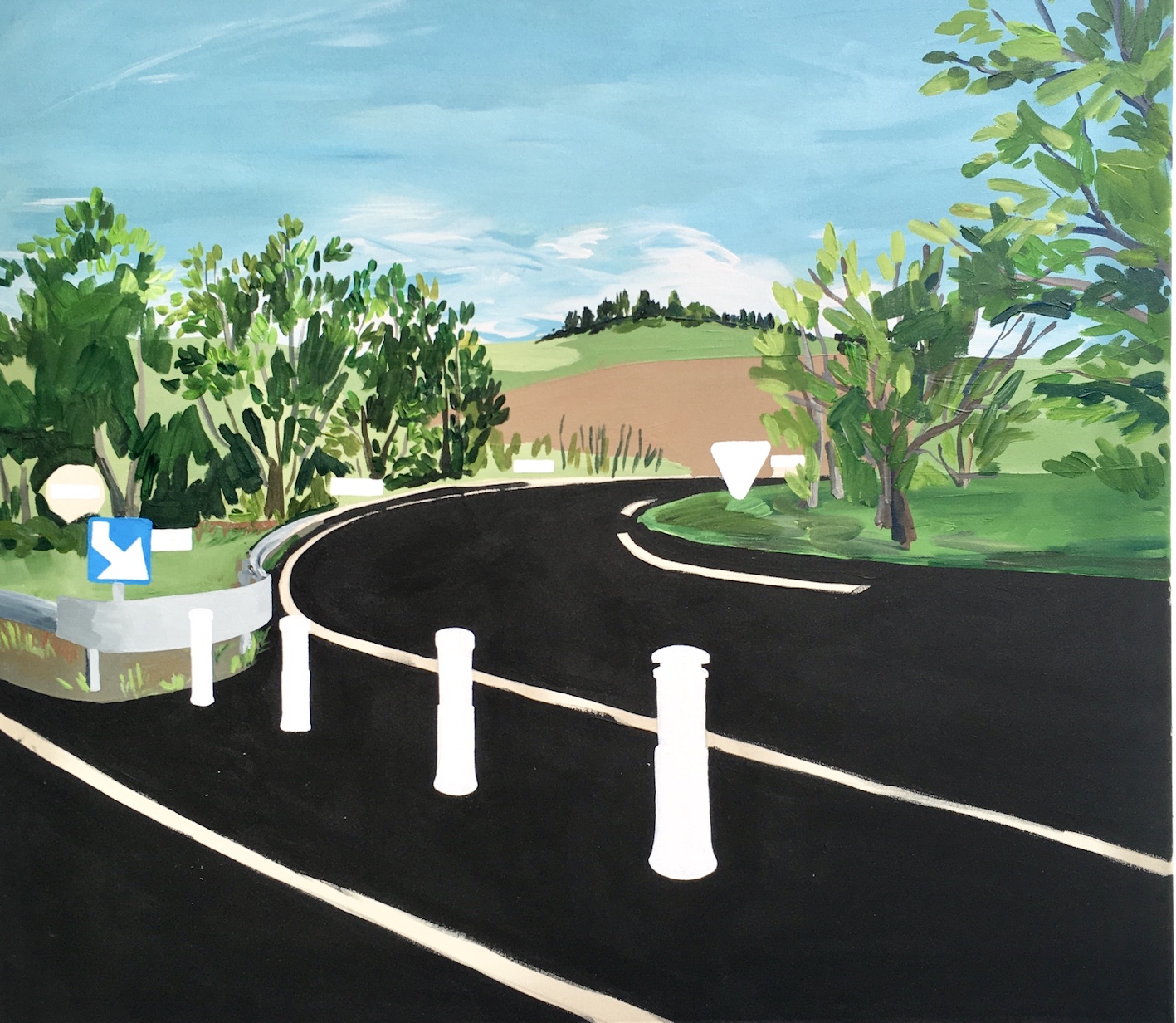 Engagée dans un travail de peinture, elle questionne la rapport à la couleur et aux différents matériaux qui lui servent de support (toile, bois, papier, plexiglass). Ses sujets de réflexion sont ceux de la promenade, du voyage, du souvenir mais aussi ceux qui évoquent les paysages et ces rencontres du quotidien, reflets d’une époque, d’une consommation.