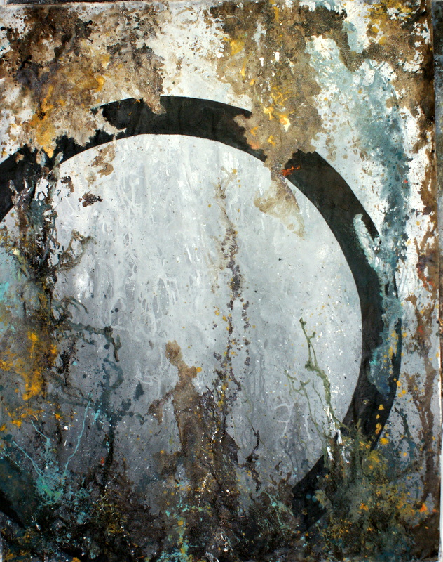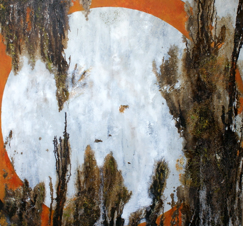 “Avec la série de peintures H²O j’aborde la question de la transmission, thème qui m’est très cher. Transmission familiale, transmission des savoirs, transmission écologique : qu’avons-nous reçu, que semons-nous, que laisserons-nous aux générations suivantes? Chacun de nous n’est qu’un maillon de la chaîne. Le cercle, omniprésent dans mon travail en est le symbole. Il est le lien entre le passé et le futur, il est l’oxygène, il est la vie et son éternel recommencement.”