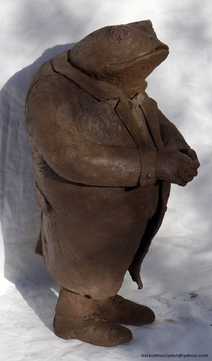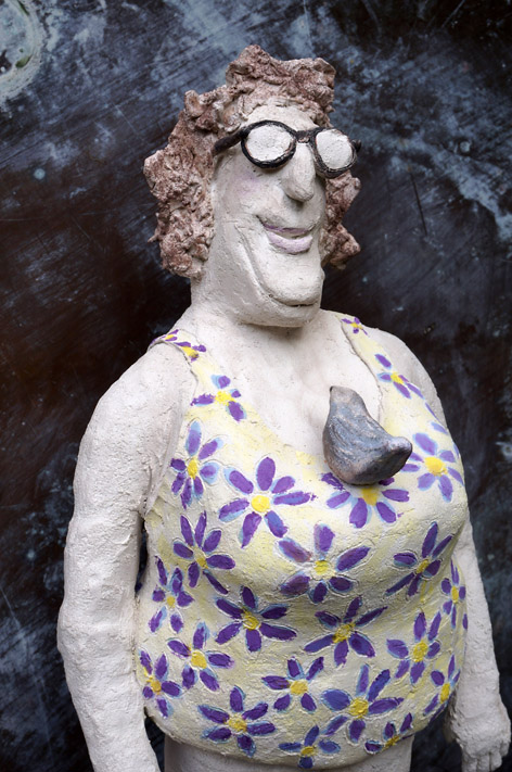 Dans la série « vie quotidienne » la femme, l’homme, l’enfant se montrent ainsi sans concession mais surtout pas sans humour et encore moins sans amour : loin des canons de beauté, de l’œuvre parfaite et millimétrée sublimant le beau – parfois jusqu’à la caricature – les sculptures choisissent le contrepied de la « beauté du réel ». Du réel dans son imperfection, ses petits et grands défauts. Que ce soit à la plage (nouvelle vague), dans la quête du graal santé-beauté standardisé (ça balance pas mal), dans les postures sans pose du quotidien (quotidien) ou dans les audaces de couleurs (colorama) nos contemporains et nous-même vivons une comédie humaine qui induit sa pleine et sincère beauté et vaut vraiment d’être captée, sculptée, exposée.