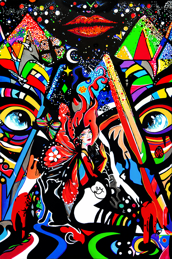 Addicte des couleurs, fascinée par l’émotionnel, je cherche à raconter, à traduire l’être, le cheminement de l’être, un état affectif, son évolution dans une quête holistique, d’unité avec le Tout, par la mise en situation d’un personnage, de motifs narratifs internes et externes à celui-ci.