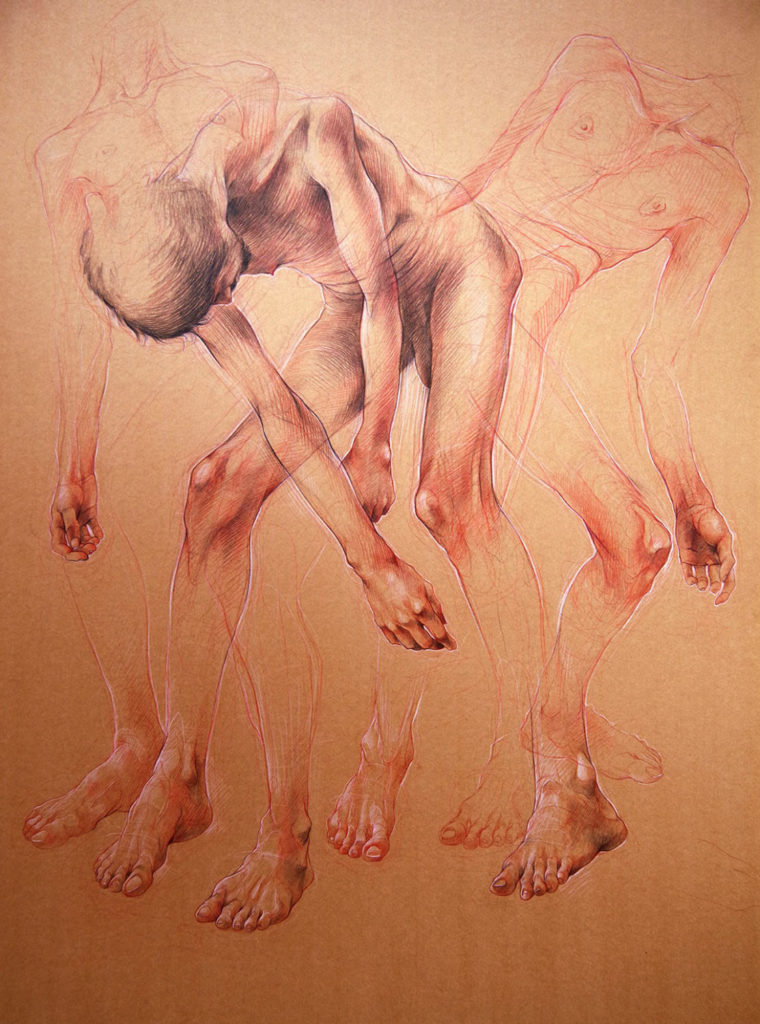 La démarche artistique est principalement liée au corps et à ses représentations : nus, portraits, scènes…