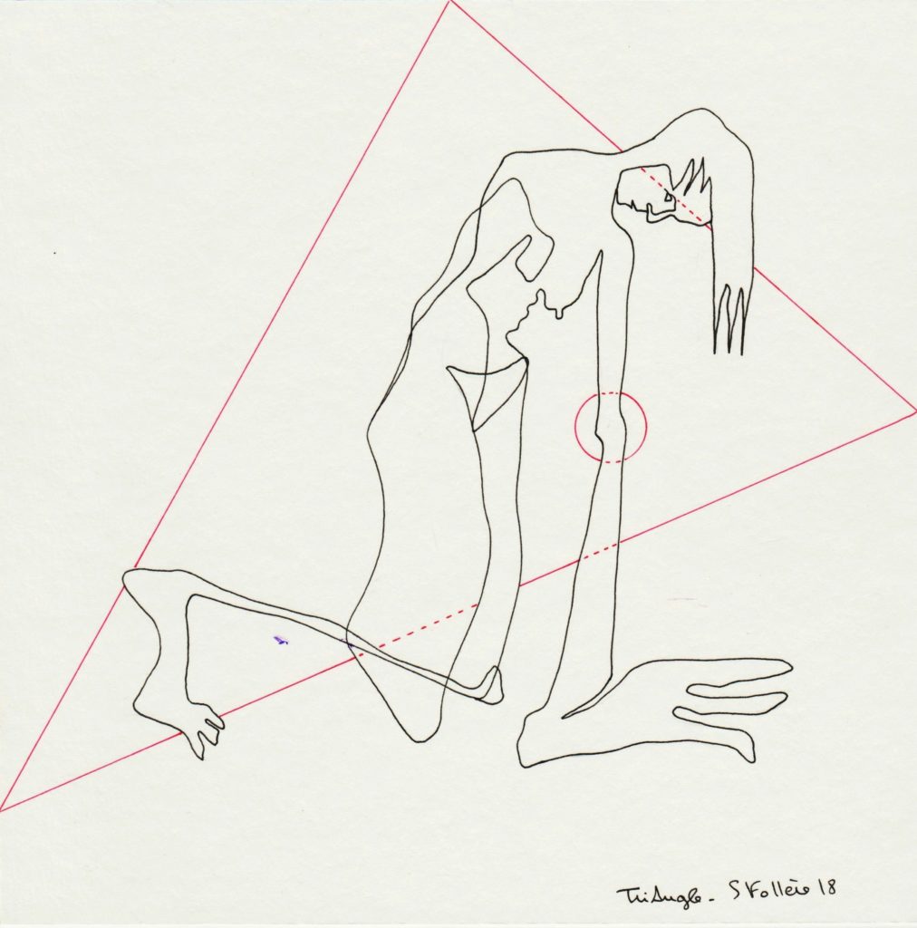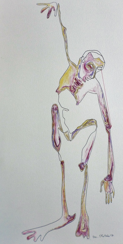 Sandrine Follère a une prédilection pour le dessin qui est, selon elle, le chemin de la structure, de la construction, de la forme première, de la prise de risque de raconter dans le vif du sujet, du corps.