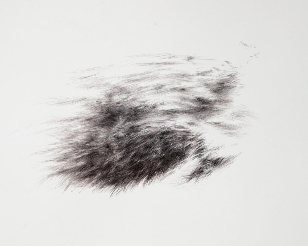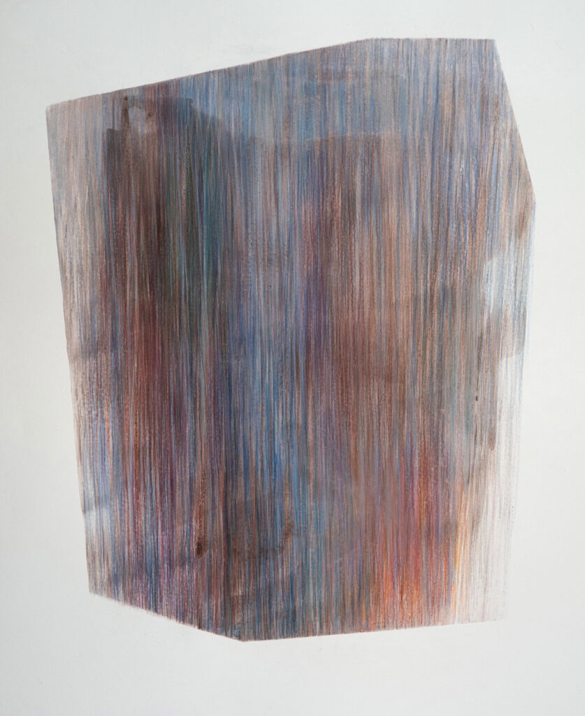 C’est au crayon de couleur ou au stylo, que je campe ces espaces (topographies informelles, faites de souffle, de flou) portés par l’homophonie d’un trouble qui guide mon regard.