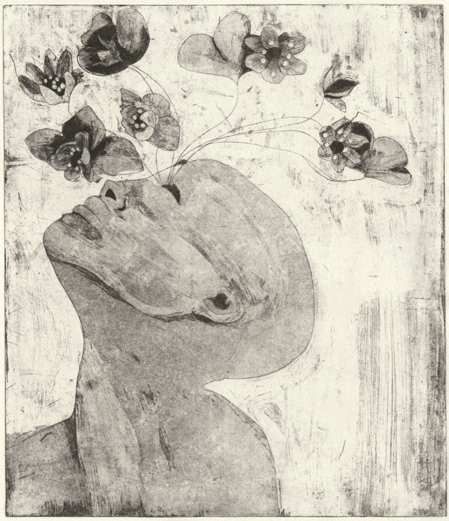 La gravure pour creuser, explorer ce lien entre l’homme et le règne végétal.