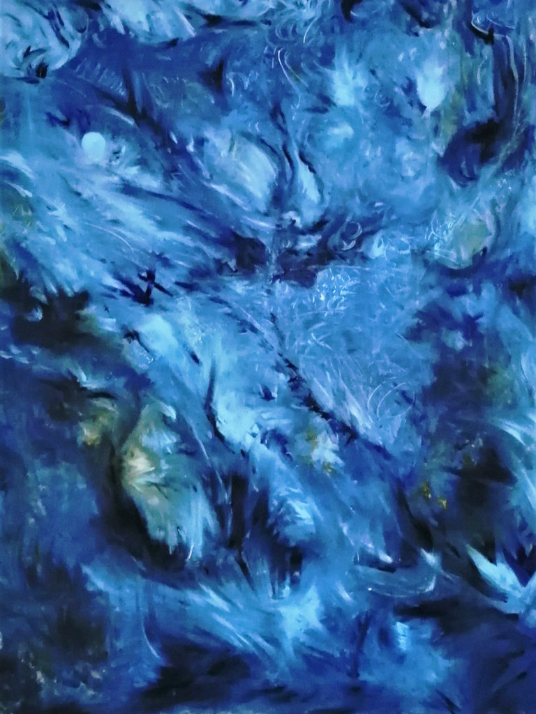 Je voudrais peindre ce qui ne se voit pas, comme le souffle de la vie, l’instant éphémère d’un faisceau de lumière qui transcende l’espace, l’insondable, le souffle du vent, le murmure d’un ruisseau, l’en-deçà du visible, le chaos, le silence de l’espace.
