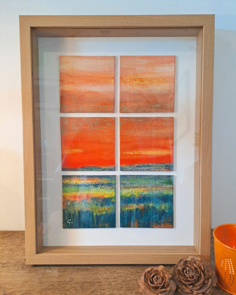 Plus récemment, je me sens guidée par un élan inconscient qui me pousse à retranscrire cette sensation de profondeur, d’espace et de lumière qui m’anime depuis toujours, le thème de l’horizon s’impose de lui-même et devient alors ma ligne directrice picturale.. Cet horizon hypnotique et fascinant, à la fois universel et singulier comme une ligne insaisissable nous reliant tous autant que nous sommes..