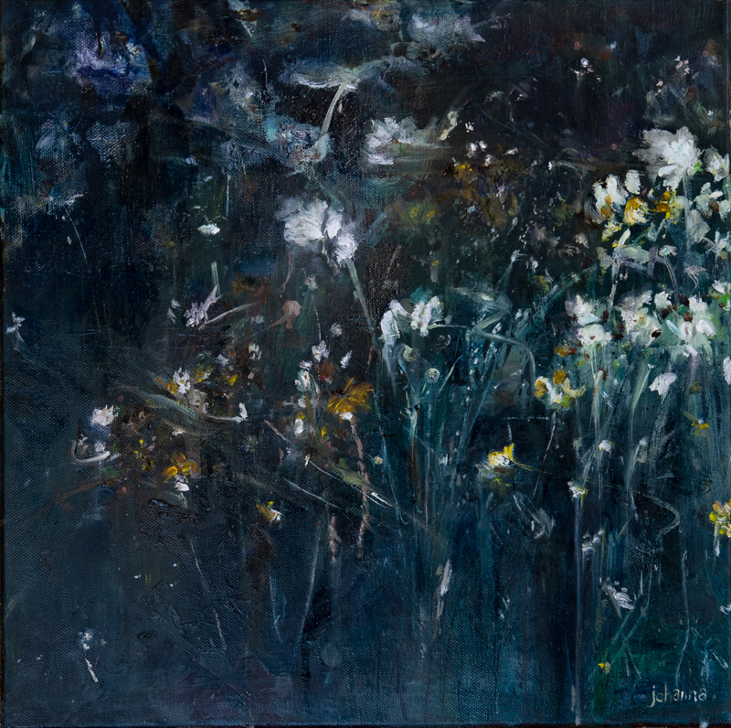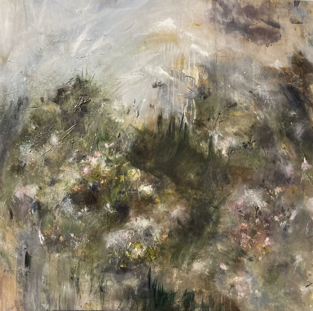 A travers la notion d’entrechamps, mon travail propose de créer un lieu de communication entre nature, onirisme et réel. Mon but n’est pas tant la maitrise du paysage que l’escapade picturale qu’il suscite. Matière et lumière permettent d’éprouver le pouvoir de la couleur et ses enchainements narratifs. Les zones de non-figuration, ainsi qu’une quasi-permanence de l’élément floral, génèrent une tension qui donnent son cadre à la toile. Mais l’escapade reste hors-champ. Jalonnée de micro-événements plastiques, elle est mystérieuse et permet d’interroger notre rapport au monde.