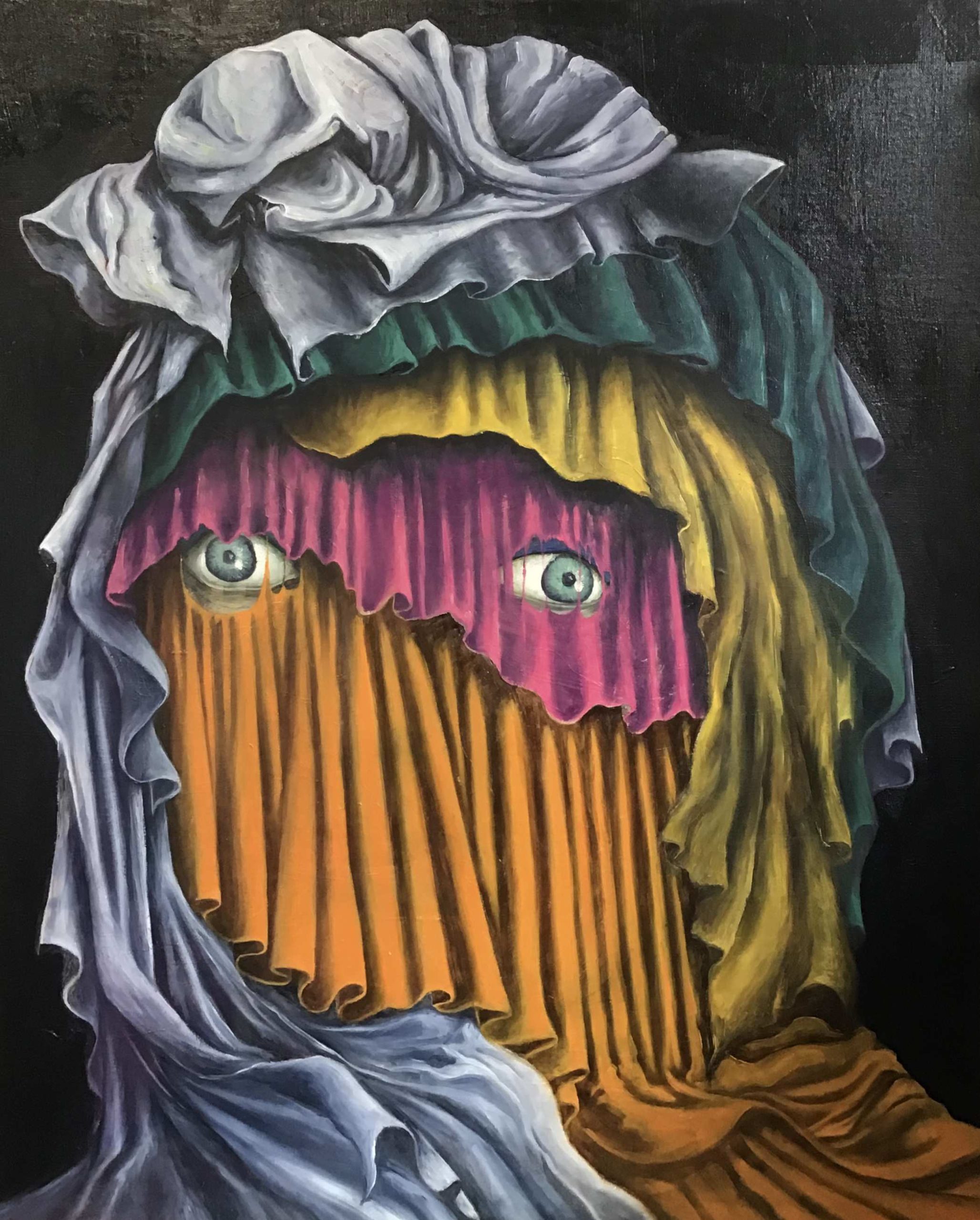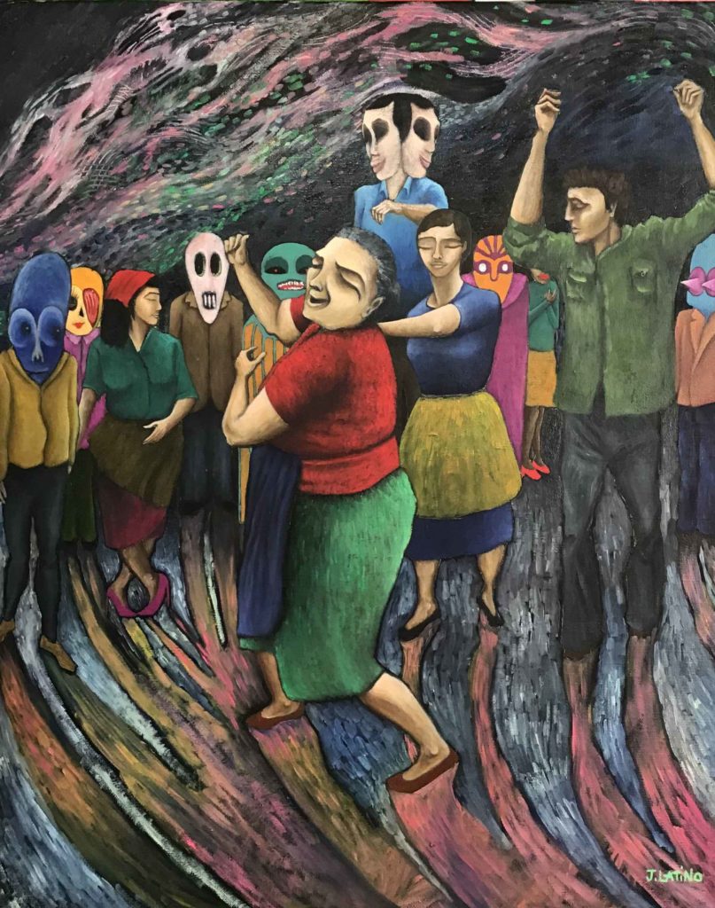 Mes tableaux sont teintés de kitch, de caricature, de dérision et d’autodérision, simplement parce que c’est avec ce regard que je vois le monde depuis mes plus lointains souvenirs.
