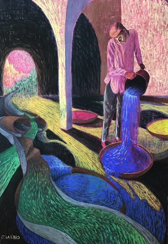 Je cherche à animer ma peinture d'un esprit populaire et humoristique où s’affrontent des contrastes de couleurs et d’idées.