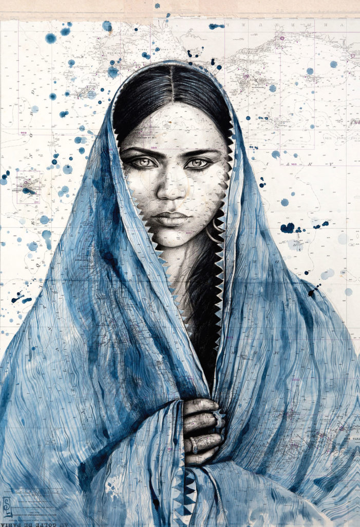 Ses dessins se nourrissent inévitablement de rencontres fortuites. Sa peinture retranscrit l’émotion suscitée par des moments d’échange, en passant de croquis pris sur le vif dans des conditions précaires à des toiles gigantesques crées dans la chaleur de son atelier.