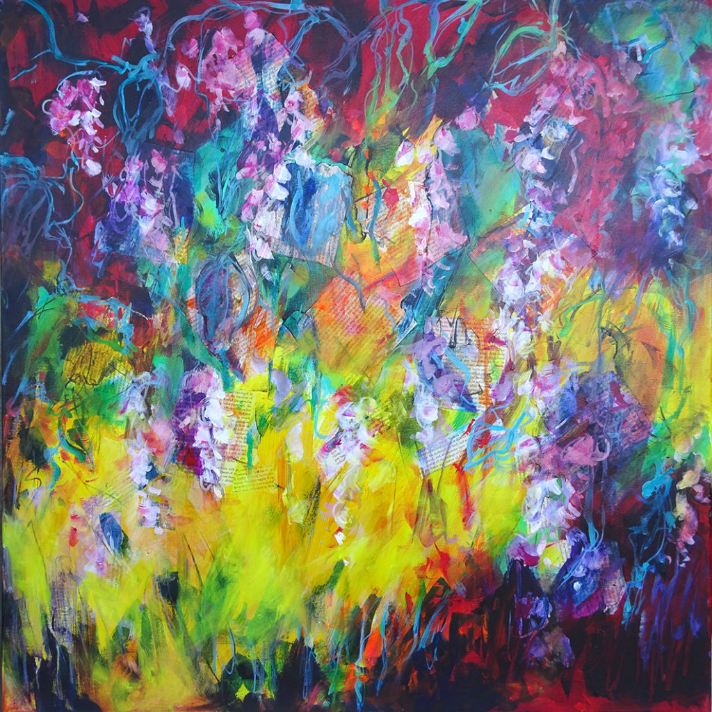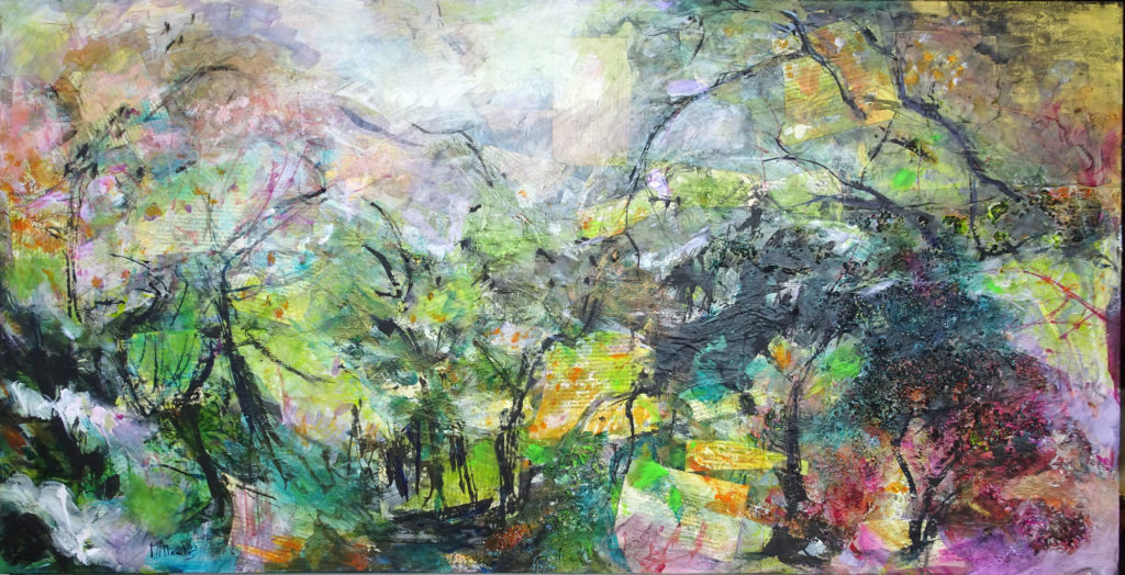 L’emploi du collage allié à l’acrylique apporte une présence et un relief au travers duquel je joue des contrastes et des profondeurs, y ajoutant cette touche de couleurs imprévisibles voire quelque peu déconcertantes, qui captent le regard jusqu’à l’interrogation. La forme a peine apprivoisée s’échappe et s’estompe dans un ailleurs à la frontière du figuratif et de l’abstraction.