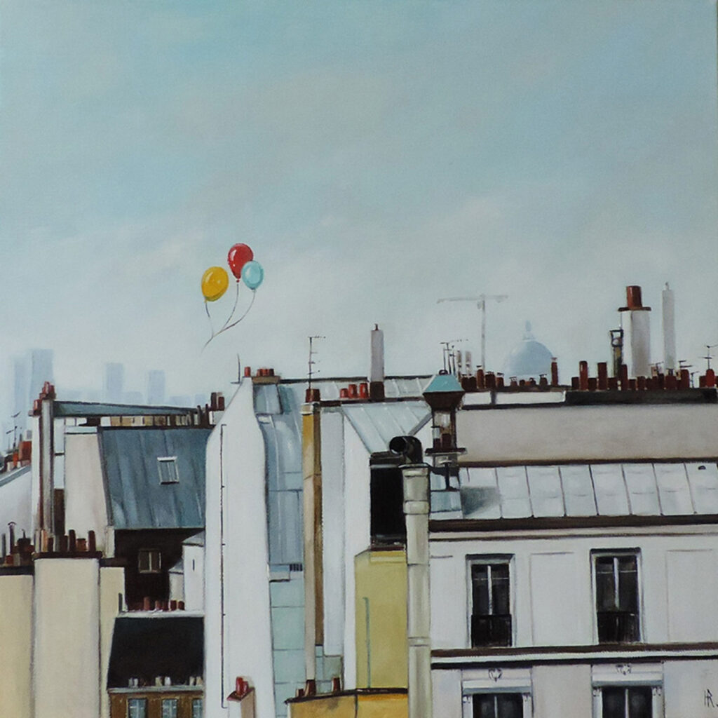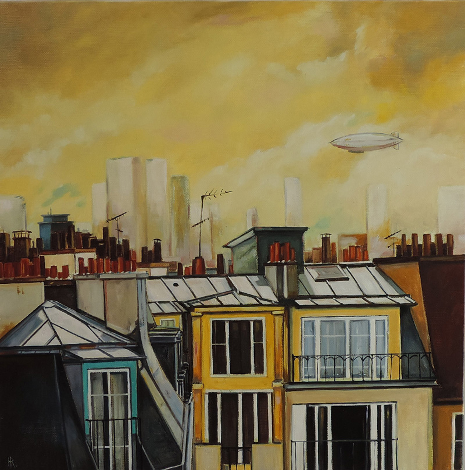 Mes tableaux récents sont d’une part, des paysages urbains : ce qui m’intéresse ici c’est la musicalité, le rythme crée par les lignes horizontales, verticales et obliques, jouer entre le réalisme et le déni du réalisme, l’équilibre et le déséquilibre et également de représenter dans un espace la présence humaine sans qu’il y ait besoin de l’y inscrire.