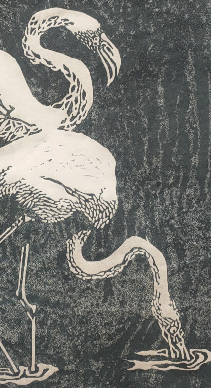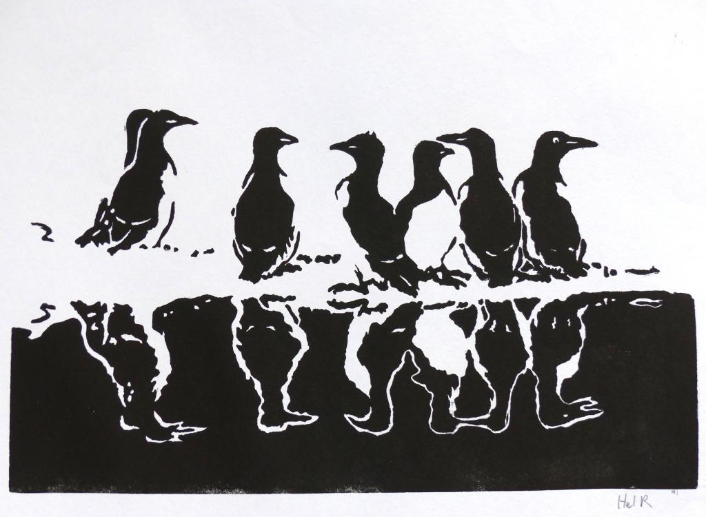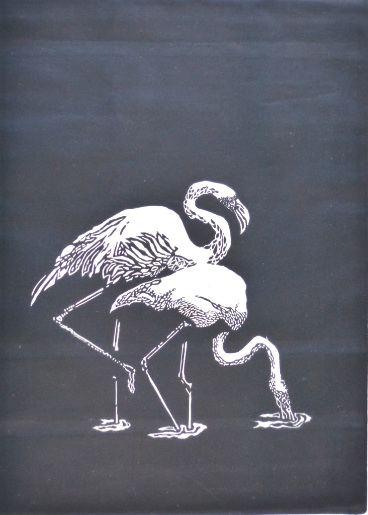 Faisant partie de l’association Toulouse Gravure Garrigou, je partage la démarche artistique du collectif. En ce qui concerne mon travail personnel au sein de l’atelier je me suis vivement intéressée ce début d’année à plusieurs techniques: la linogravure pour des motifs encadrés par deux espaces (air et eau), l’eau forte sur le thème de la disparition /apparition