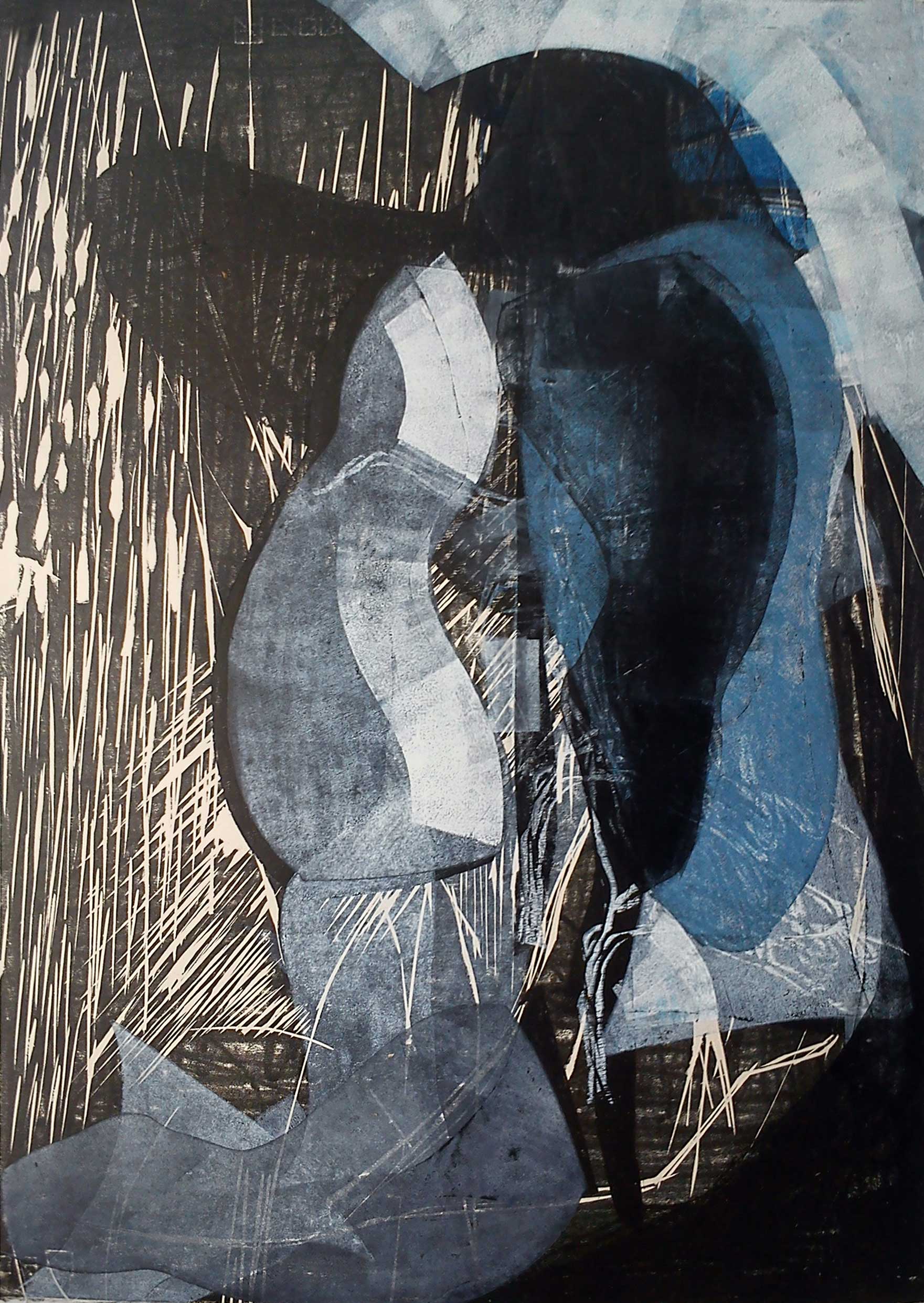 Nous sommes loin du sujet et des effets de manche ou de pinceau. Karine Sancerry projette notre regard, comme on lance un galet qui fait des ricochets dans la lumière du tableau. Ses pixels sont des coups de brosse et de gouge (xylogravure) qui nous proposent le mystère plutôt que l’évidence. Hors des codes et tout en s’inscrivant dans le questionnement de l’image par la peinture et la gravure, Karine Sancerry nous fait traverser avec jouissance le monde des apparences. A propos de Francis Bacon dans ” Logique de la sensation”, Gilles Deleuze nous parle du corps qui se dissipe :“il reste encore contracté par les forces qui le happent pour le rendre à l’entour”. Cette dissipation du corps, nous la retrouvons chez Karine Sancerry, encore et encore.