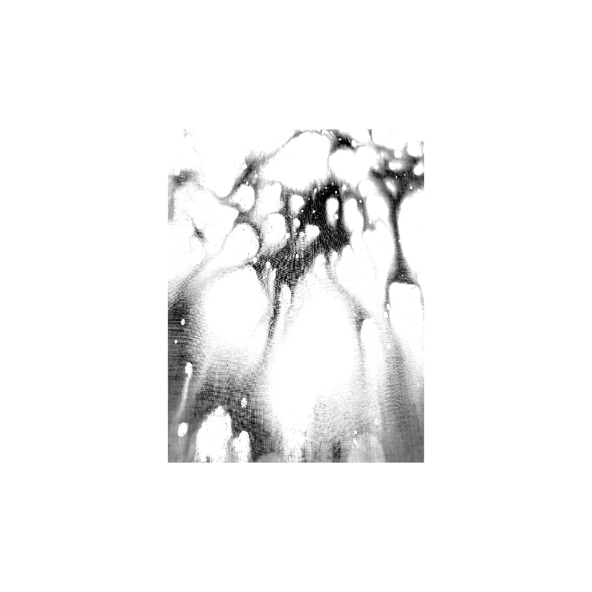 En premier lieu, Véronique Sapin utilise l’encre de chine pour créer des formes destinées à être numérisées et animées; ensuite, elle détermine les règles informatiques qui délimiteront le processus créatif de chacune de ses œuvres génératives; et enfin les programmes conduisent le processus vers le résultat souhaité en opérant dans le cadre d’un ensemble de contraintes définis par l’artiste. Les spécificités algorithmiques de chacune des œuvres de Véronique Sapin sont uniques. “Avec l’art génératif, l’encre retrouve son mouvement originel dans un nouvel espace de liberté. La forme peinte de mes encres montre leurs rythmes intrinsèques tels que je les ai délibérément arrêtés sur la toile.”