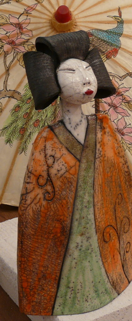 Le travail en Raku ( cuisson ancestrale japonaise) de la céramiste Sandrine Sueres est inspiré par les cultures et les arts d’Asie et d’Afrique.
