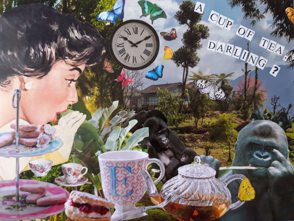 Mon cheminement artistique m’amène aujourd’hui à réaliser des collages analogiques, qui combinent mon goût pour la mise en scène, les couleurs et les arts visuels.