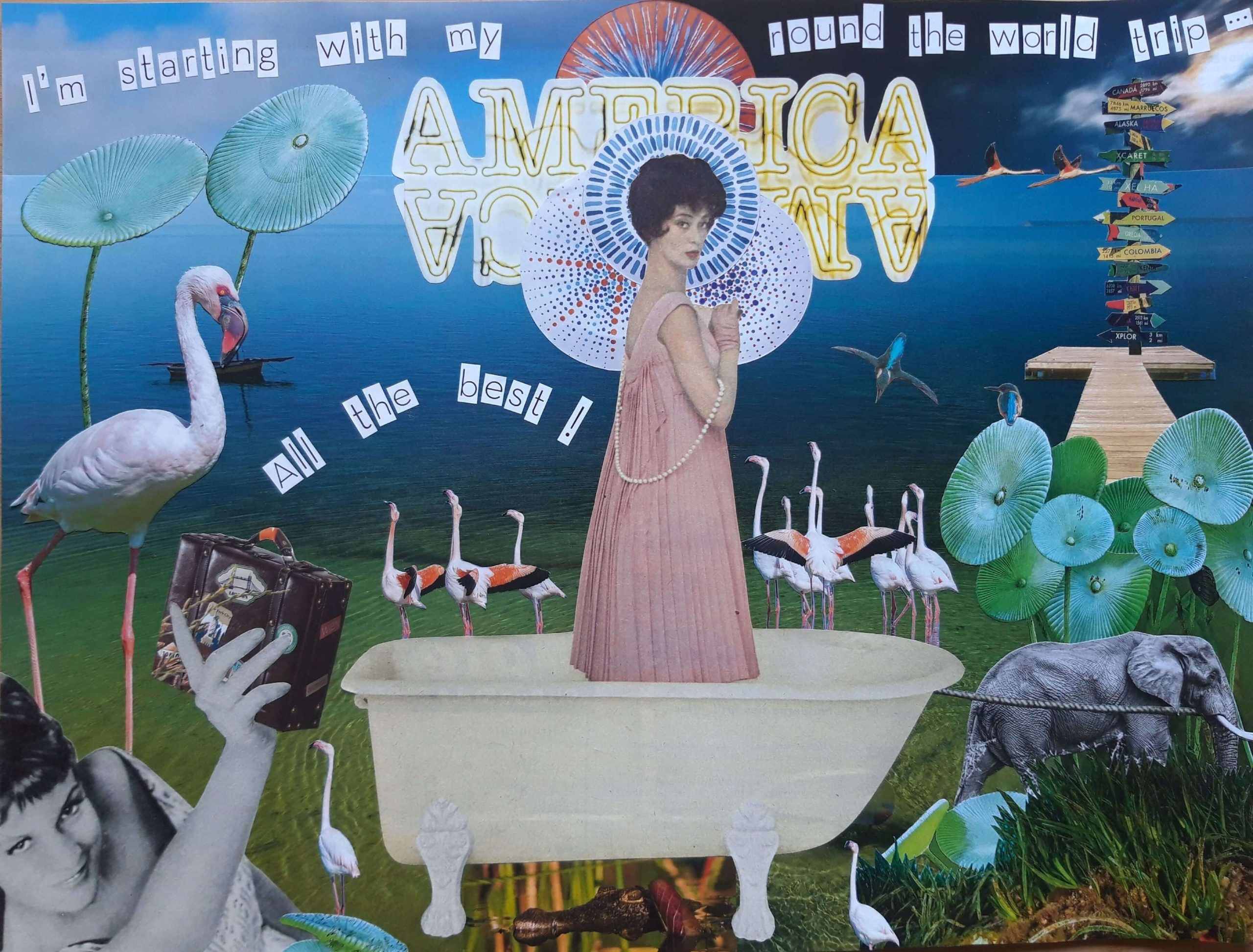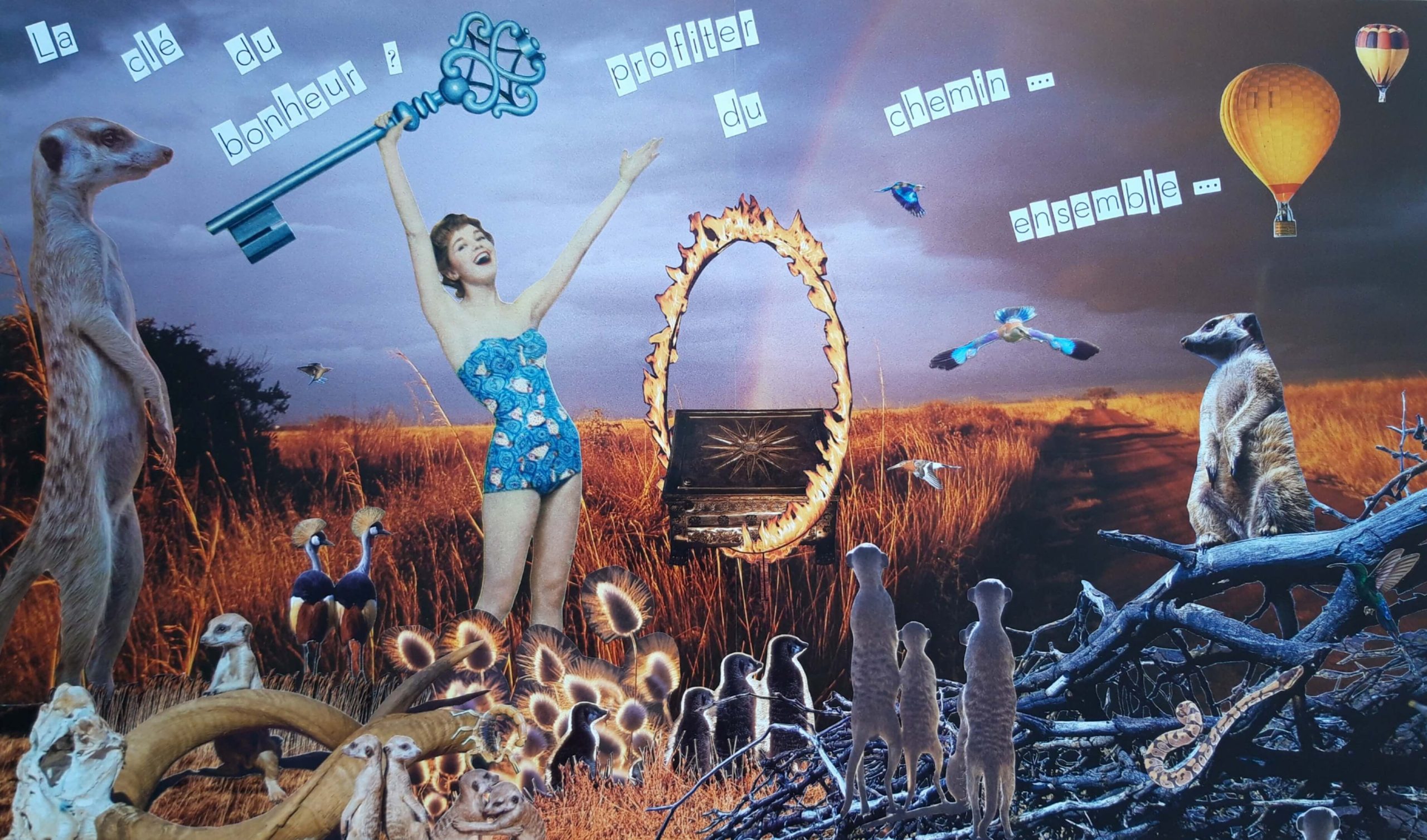 Chacun de mes collages raconte une histoire. La femme y joue le premier rôle, avec humour et légèreté. Les animaux, la nature, les voyages, s’invitent également dans mes œuvres, avec en filigrane, toujours, la liberté.