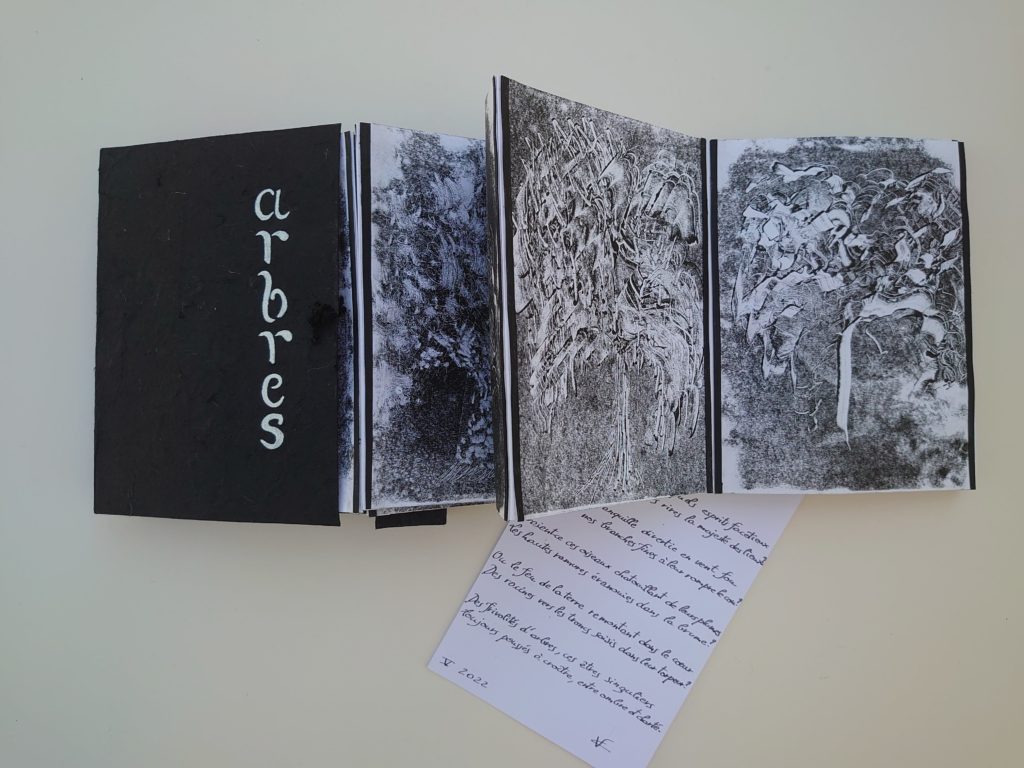 Ils résonnent avec les mots, textes poétiques, dans mes livres-objets, formats intimes, qui se transforment pour se déployer et être partagés, exposés.