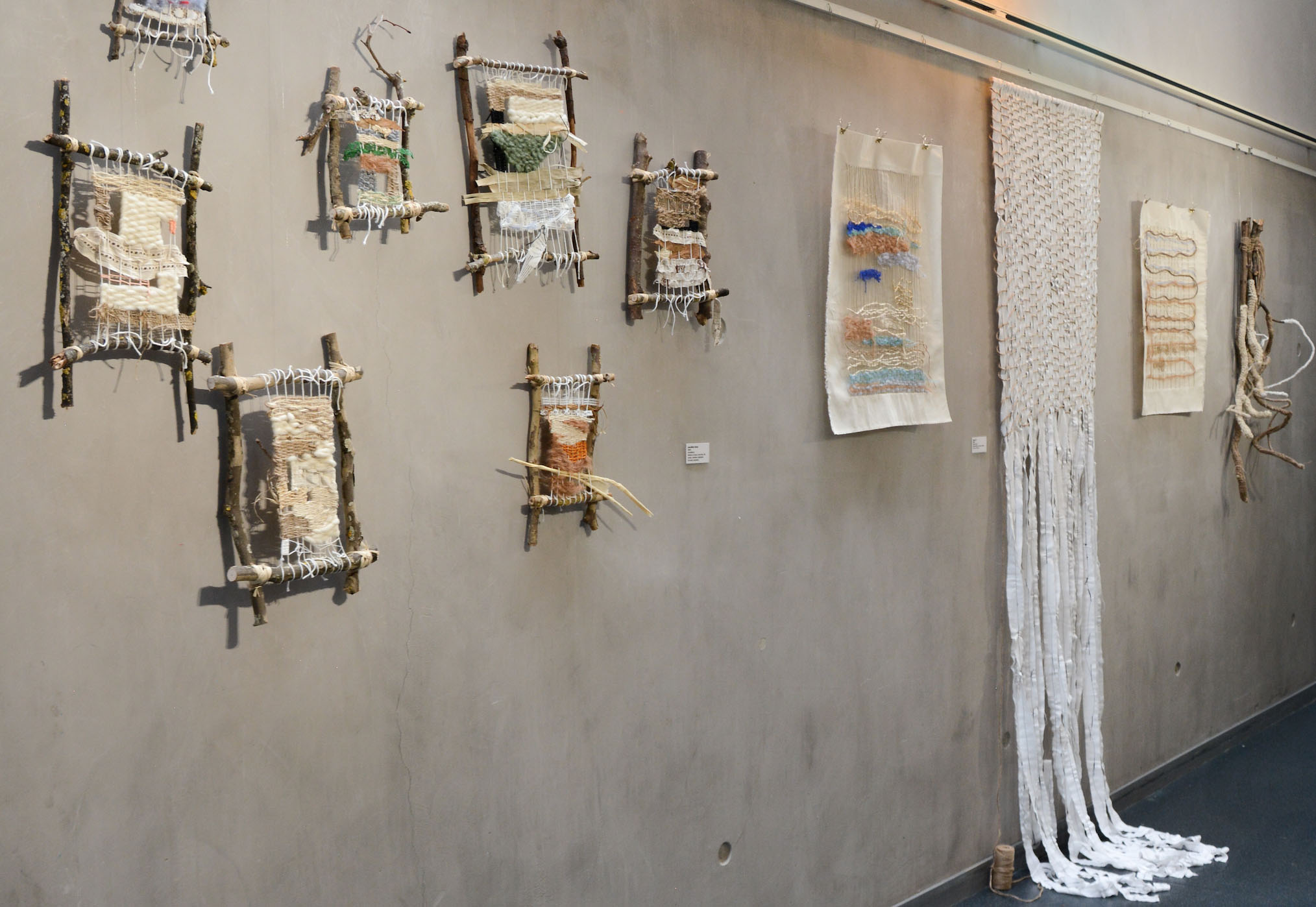 Dans mes installations, différentes pièces dialoguent entre elles : matières végétales, fils, tissus,